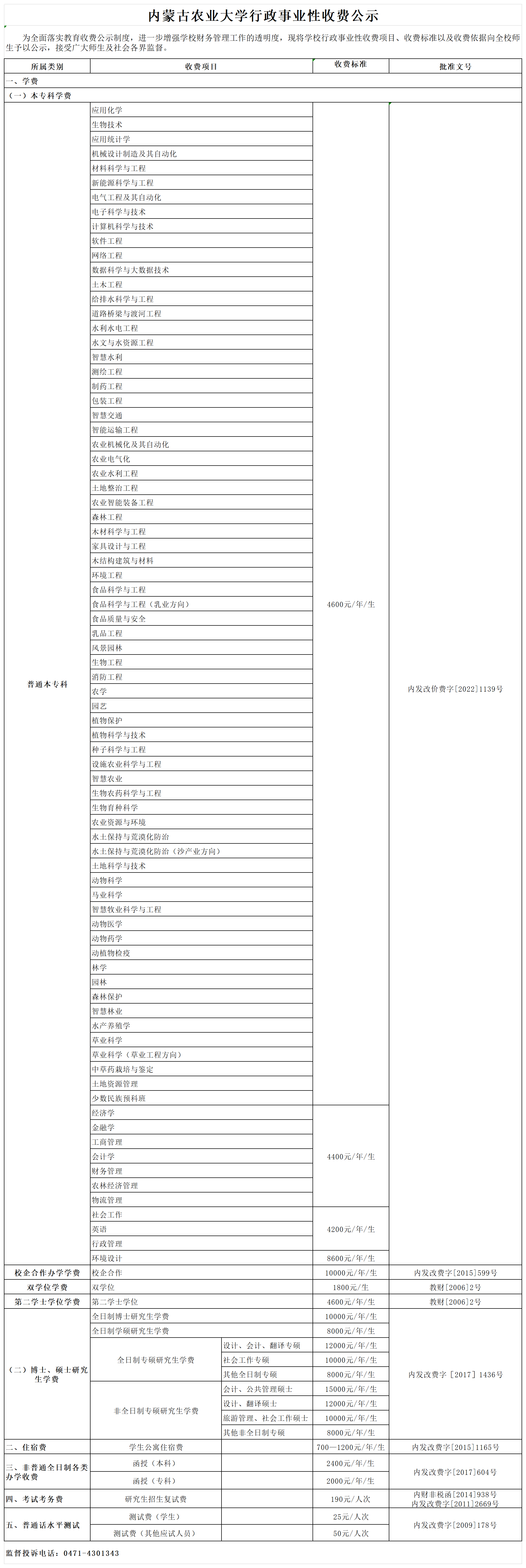 行政事业性收费标准(农大本部公示)20250105(1).xlsx